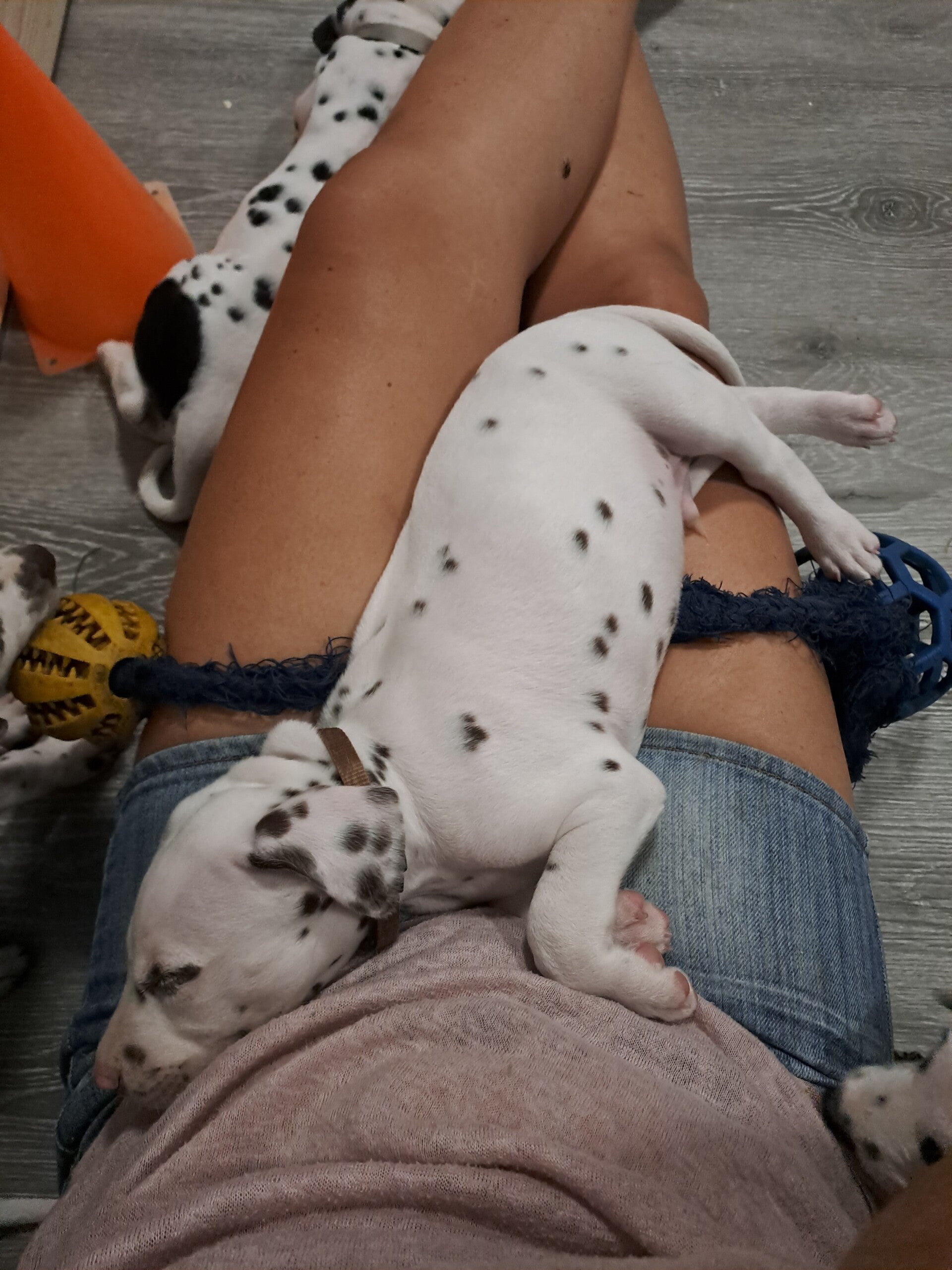 6 Wochen WIR. Die Kleinen entwickeln sich prächtig. Wenn man in den Auslauf kommt, sind sie aufmerksam und voller Freude. Sobald man sich auf den Boden setzt, hat man verloren. Die Punktekinder krabbeln auf dich drauf und fordern jeden Besucher zum spielen oder kuscheln auf. Sie bringen einen zum Lachen und irgendwann schlafen sie erschöpft und zufrieden ein. Wir genießen jede Minute mit den kleinen Wusels.
